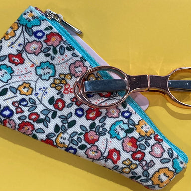 Pretty and practical, these colorful scissors conveniently fold down for protection from sharp points. And they include a delightful zipper case, too!